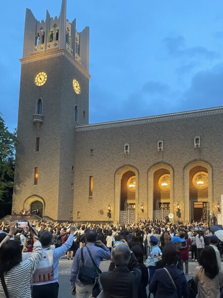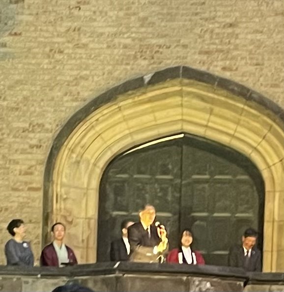 エンディングは大隈講堂前広場での校歌斉唱。田中総長の閉会挨拶とともに今年の稲門会は幕を閉じました。