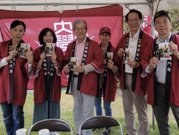 板橋稲門会の目的の一つは地域社会の発展へ寄与。今年も新規会員募集とあわせて、板橋区が認定した「板橋のいっぴん」の中から選んだお菓子(かりんとう)を販売し、ささやかながら製造元の販路拡大のお手伝いをしました。