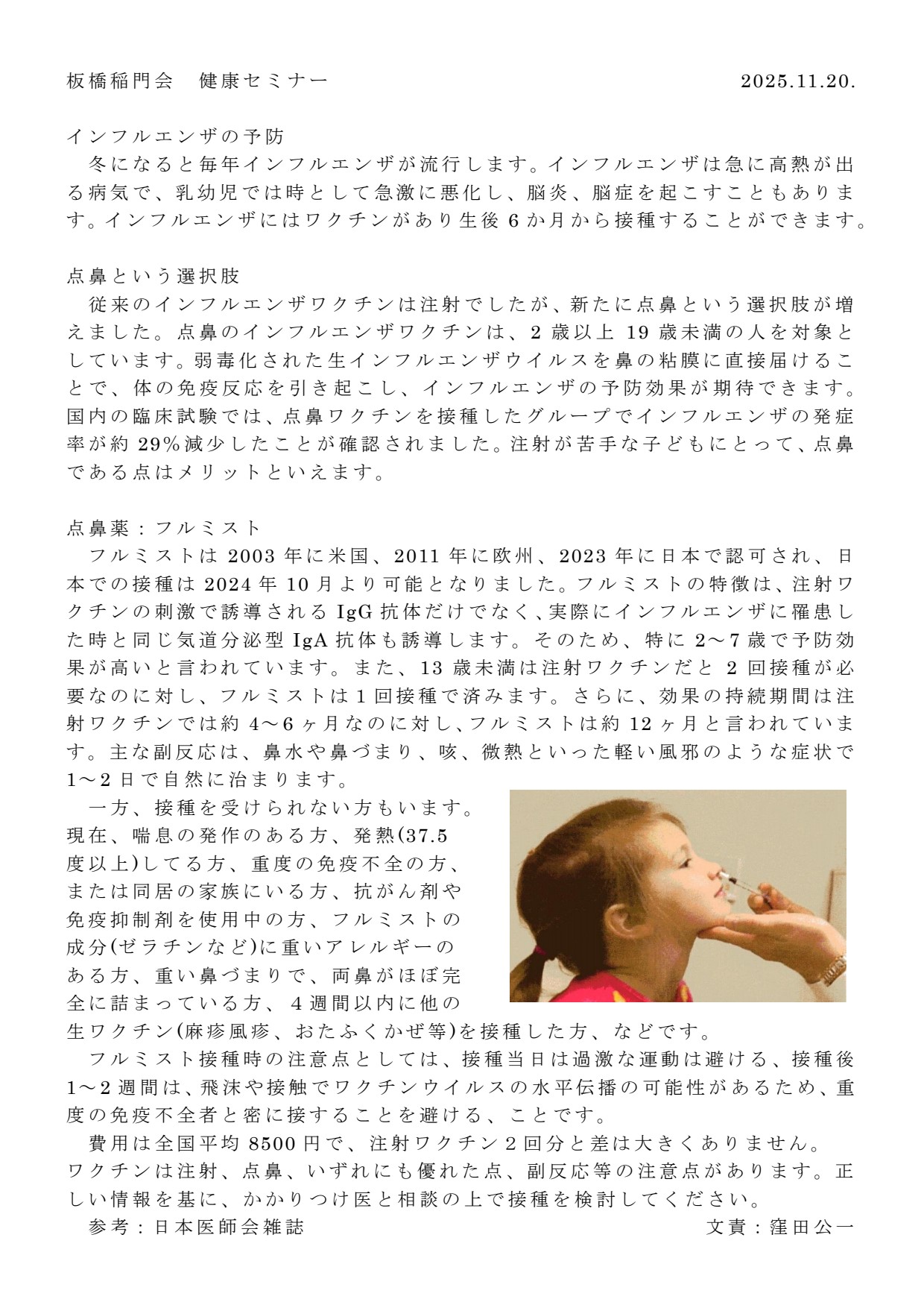 ワクチンは注射、点鼻、いずれにも優れた点、副反応等の注意点があります。